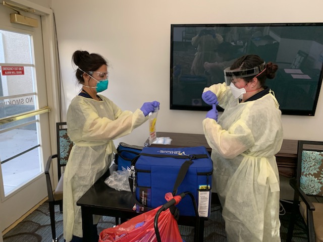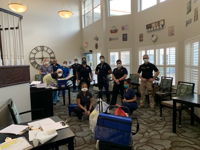 Guardian Elite Medical Services has teamed up with the Southern Nevada Health Department and Clark County to form a strike team. This strike team is in place to help combat COVID-19 by testing vulnerable patients in health care facilities and their staff. We have taken this battle against COVID-19 seriously and are stepping up in ways that will allow us to hopefully prevent it from spreading further. Check out some of the photos of us in action: